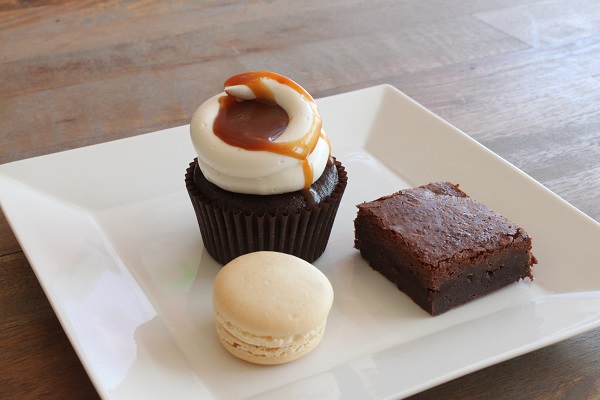We then moved on to the salted caramel trio of desserts: the macaron, the brownie and the cupcake. We started with the macaron which had a very light and subtle flavor. The brownie was not too chocolaty and still had undertones of the salted caramel in every bite. Finally, we decided to end our tasting with the salted caramel cupcake which looked as beautiful as it tasted. You can really taste the salted caramel notes in the flavor profile and was our favorite of the three. The cupcake was rich, sweet and gooey – the perfect way to end our day.