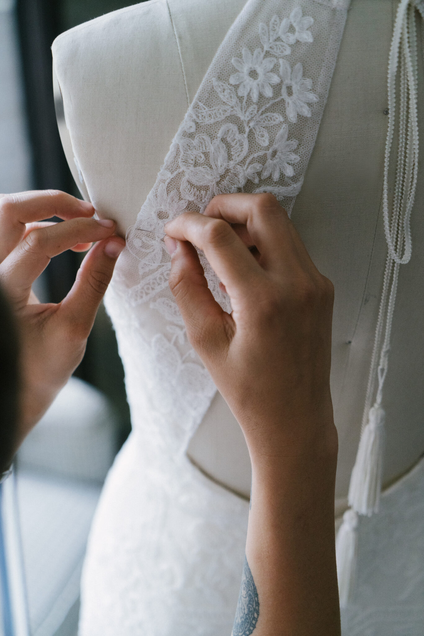 For example, you can make a lace headband or headpiece, or you can wrap pieces of the old fabric around your bridal bouquet.