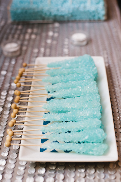 Rock candy is the ultimate reminder of youth , reminiscent of elementary school science classes. Bring this childhood favorite to your wedding dessert table in the form of ice blue crystals. Icicles of rock candy are perfect for any winter wedding!
