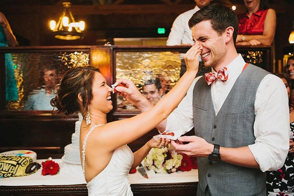 16. This bride and groom look like they’re about to break out into a food fight!