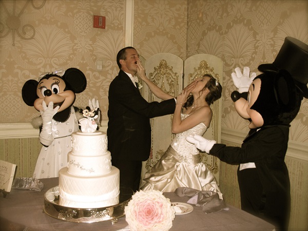 11. This lucky couple had Mickey and Minnie witness their wedding cake smash.