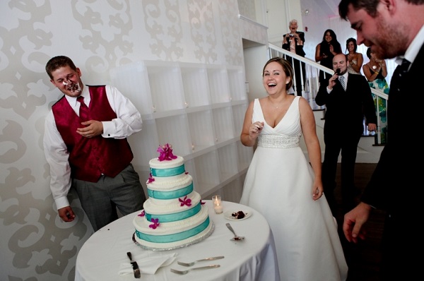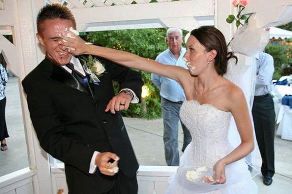 9. We’re guessing this bride won’t be smiling so happily when she realizes her makeup is now smeared with cake.