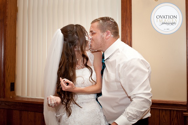 15. Though this groom had his defense up with a napkin, this happy bride still got to smash some cake in his face.