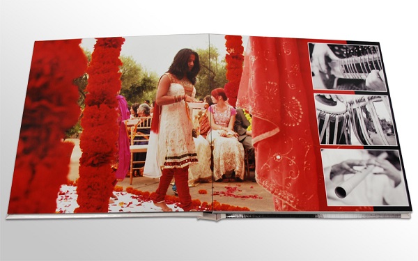 The pages in a flush mounted album are printed as one photo that extend across the entire page and lay flat across the binding. They are mounted on a thick, durable cardstock that won’t bend. The images can spread across the book as a seamless photo, creating a superior viewing experience.