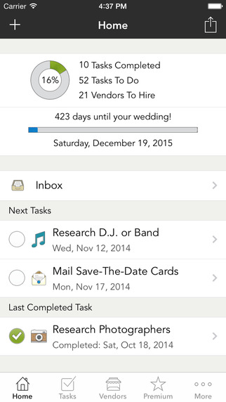 If you are just starting to plan your wedding, but have no idea where to begin, WeddingHappy is the perfect wedding planning iPhone app to use. This app will help take some of the stress away, and help you stay organized throughout the entire wedding planning process. You can build a customized schedule with this app. This application offers you contact integration, as well as vendor management. If the wedding date changes, this app will adjust all of your due dates to the new wedding date. It is truly a lifesaver!