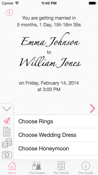 Making sure you have everything complete before your big day is important, which is why the Wedding Planning Complete iPhone app is a perfect choice for couples to use. The wedding countdown this app provides will help you keep track of your budget, as well as your wedding checklist. It will alert you when a task is complete, and it lets you know which tasks need to be handled. There is also a tool to help you keep your guest list in order.