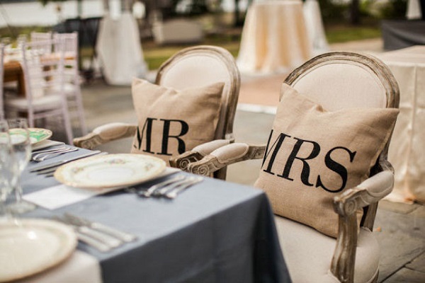 18. Mr. and Mrs. beautifully embroidered onto sheer fabric is light and romantic. You can choose fabric in any color you’d like to match your wedding’s theme.