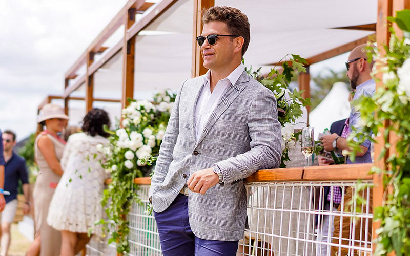 Men can wear a linen suit with a lightweight shirt underneath, or a fitted untucked shirt with nice slacks. Sunglasses and boat shoes will bring the entire look together.