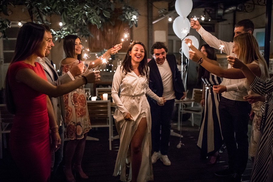 - Don’t go too dark – an all-black outfit could have you looking like a catering staff or DJ. A black suit or cocktail dress could come off as too formal.