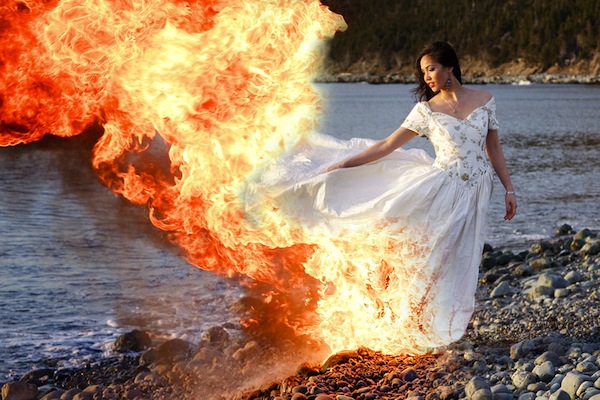 If you love the idea but aren’t willing to or can’t afford to sacrifice your wedding dress, consider buying a more affordable pre-owned dress or even a formal white dress that is not necessarily intended for weddings. This will allow you enjoy your Trash the Dress photo shoot while preserving your wedding dress in it’s original form.