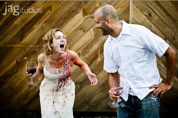 There are all sorts of ways a bride can choose to trash her dress, including paint, mud, wine, fire, wedding cake and a swim. If you’re nervous but intrigued, you can dip your toes in by researching what kinds of shoots other brides have done.