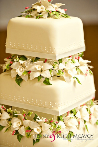 There is an endless amount of styles you can choose for your wedding cake. You can go with a classic look or be creative. You can have an all-white cake or add some color. You can have the cake match your wedding theme or you can have your cake represent your favorite memory together. Your cake may be simple or it may have extravagant decoration that matches your dress. Wedding cakes can be round or square, flat or multi-tiered. First things first, know the basics. Do you want your cake sculpted with fondant or would you prefer a soft buttercream frosting? Fondant tends to hike up the cost of the cake, however it holds stronger in high temperatures. Sit down with your fiancé and research cake inspiration. Your bakery may also have a gallery of style options to show you.